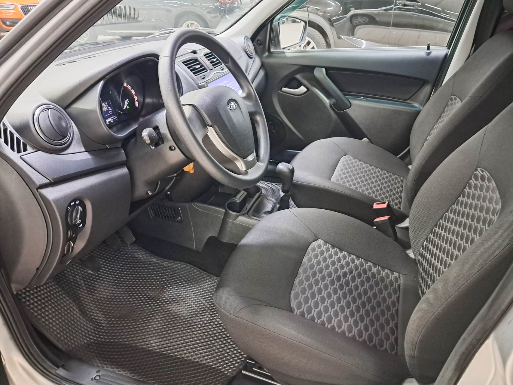Машина оснащена важными системами безопасности: ABS и передними Air‑bag, а также удобным оборудованием: электростеклоподъёмниками, регулируемой рулевой колонкой и усилителем руля. Дополнительно установлены сигнализация и набор ковров. Зимние шины Nokian Nordman 7 (175/65/R14) уже на автомобиле — готов к холодам!