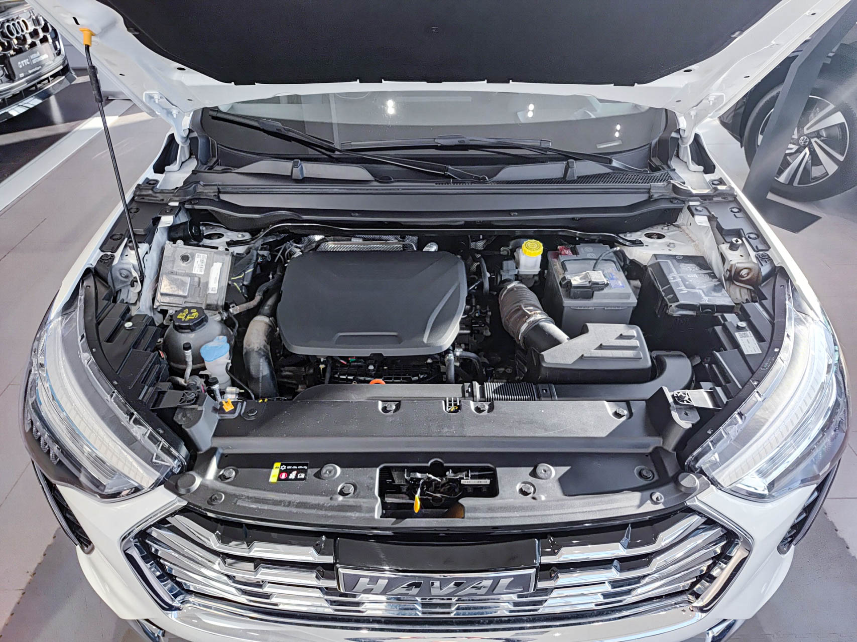 Haval Jolion 2023 года отличается выразительным и динамичным обликом. Агрессивная решётка радиатора, светодиодная оптика и спортивные линии кузова создают запоминающийся образ. Чёрные элементы внедорожного пакета и спойлер подчёркивают энергичность модели. Кузов выполнен с использованием высокопрочных сталей (доля составляет 73%), что обеспечивает жёсткость конструкции.