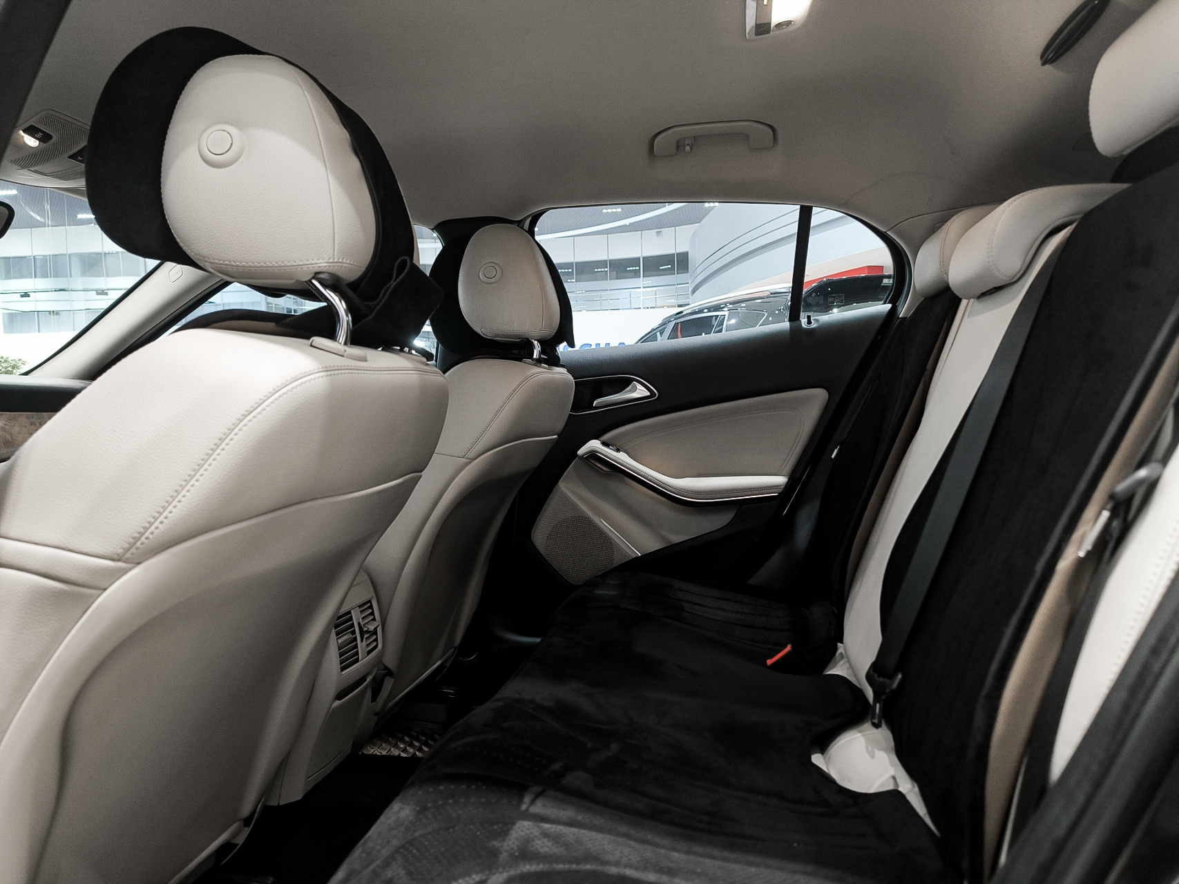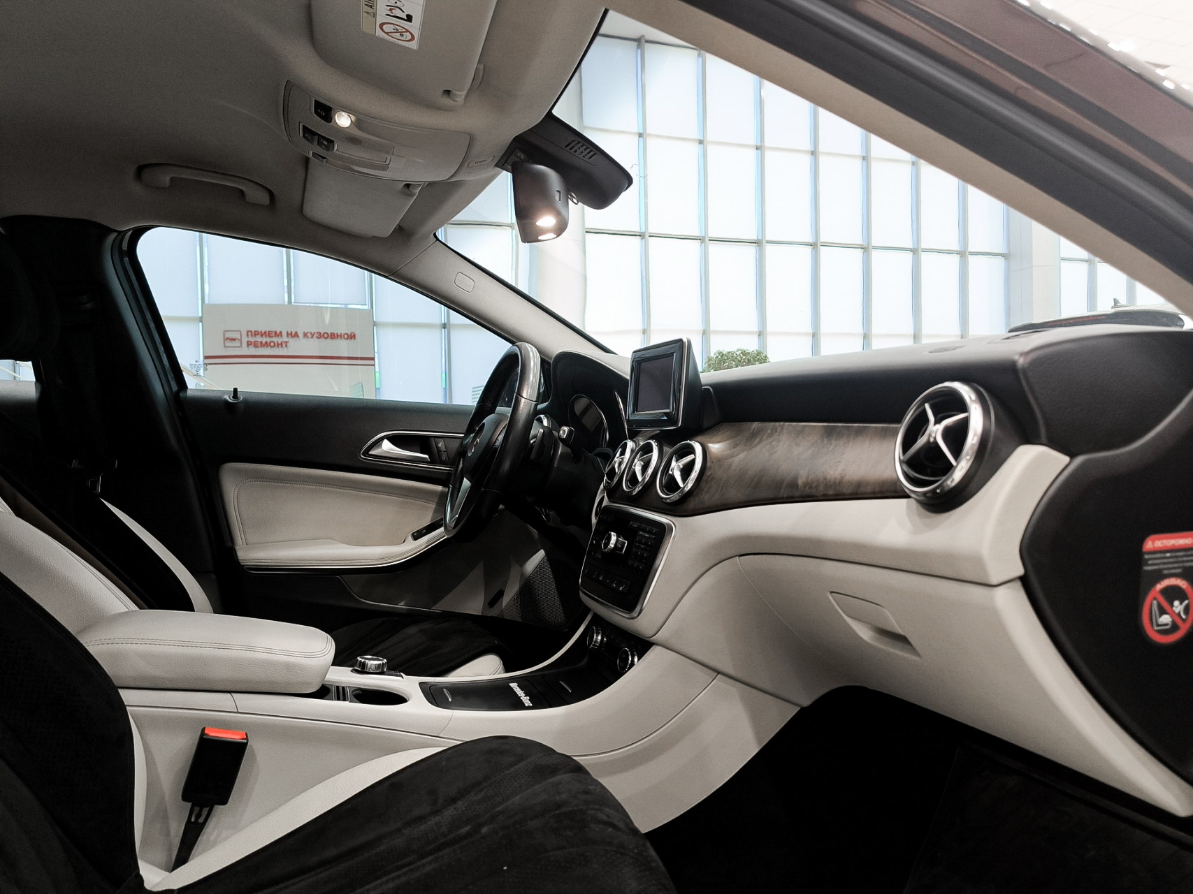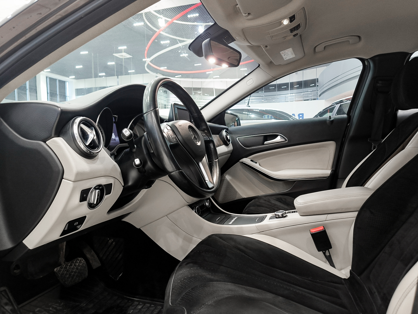 Белый кожаный салон — выглядит эффектно и ухоженно, без потёртостей.